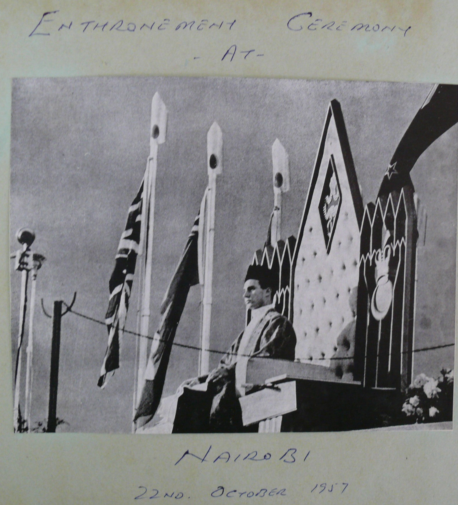 | Speech | SPEECH AT THE TAKHT NASHINI CEREMONY Nairobi - 1957-10-22 | Your Excellencies, Your Highnesses, Your Worship, My Lords, Ladies and Gentlemen, My spiritual children |