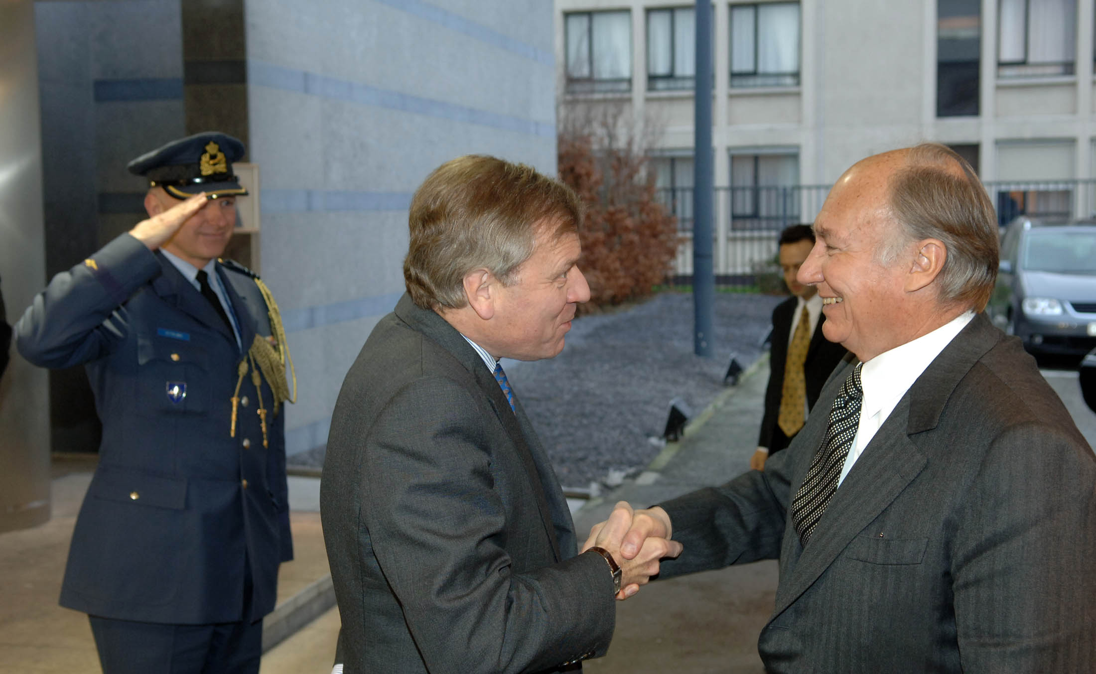 PHOTO 1: NATO Secretary General, Jaap de Hoop Scheffer welcomes the Aga Khan upon his arrival at NATO headquarters