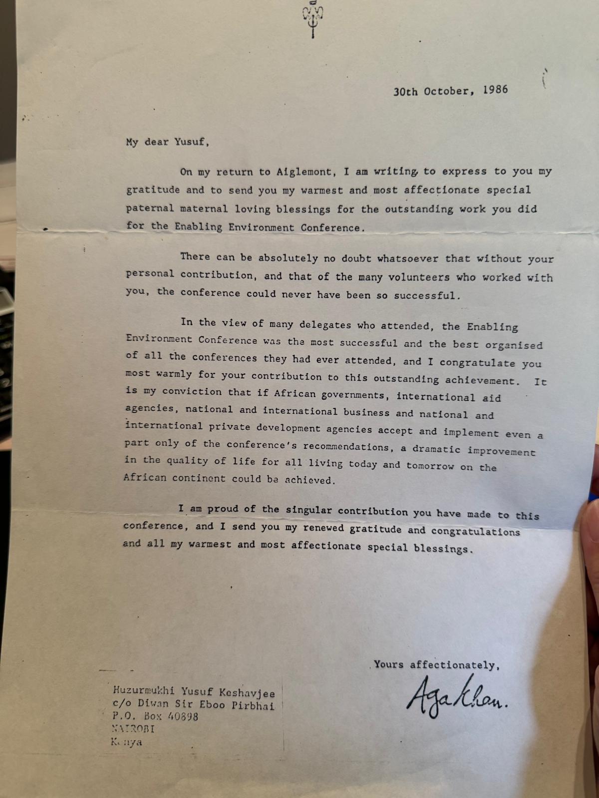 The Enabling Environment Conference entitled 'The Enabling Environment for Effective Private Sector Contribution to Development in Sub-Saharan Africa' was held in Nairobi, Kenya under the auspices of the Aga Khan Foundation (Geneva), AKFED (Switzerland), the Ford Foundation, the Rockefeller Foundation, the Overseas Development Administration (U.K), C.I.D.A and other private Kenya-based companies. 'Faces of Development' was the title of a display of over 100 colour photographs of Aga Khan Foundation projects.