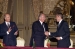 The Aga Khan and Prime Minister José Socrates exchange Protocol agreements as Prince Amyn Aga Khan looks on.