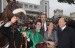 The owner of Zarkava his highness Aga Khan, his daughter Zahra Aga Khan and French jockey Christophe Soumillon after winning the Prix de l'Arc de Triomphe horse race at Longchamp race track in Paris , Sunday, Oct. 5, 2008.