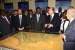 Mawlana Hazar Imam, Prime Minister Odinga, Prince Hussain, and other dignitaries discuss the model of the soon to be restored Na