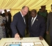 His Highness the Aga Khan and His Excellency President Mkapa viewing the model of the Phase II development of the Aga Khan Hospi