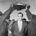 Hazar Imam passes under the Holy Qu'ran held aloft by Ismailis during His visit to Maymch, Iran on 1959-10-30