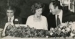 Photograph of Shah Karim al-Hussayni, The Aga Khan IV sitting with Tourism Minister Grace McCarthy at a banquet in his honour, h